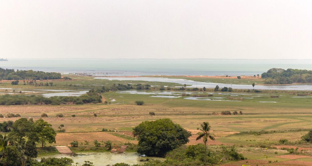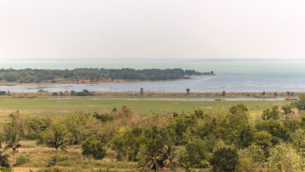 In the early afternoon, we came across a beautiful scenery of the Chilika lake as the road descended from a hill. The view of the lake and the sea with a subtle difference between the shades of water was mesmerising. We spent some time enjoying the scenery and clicking some pictures.