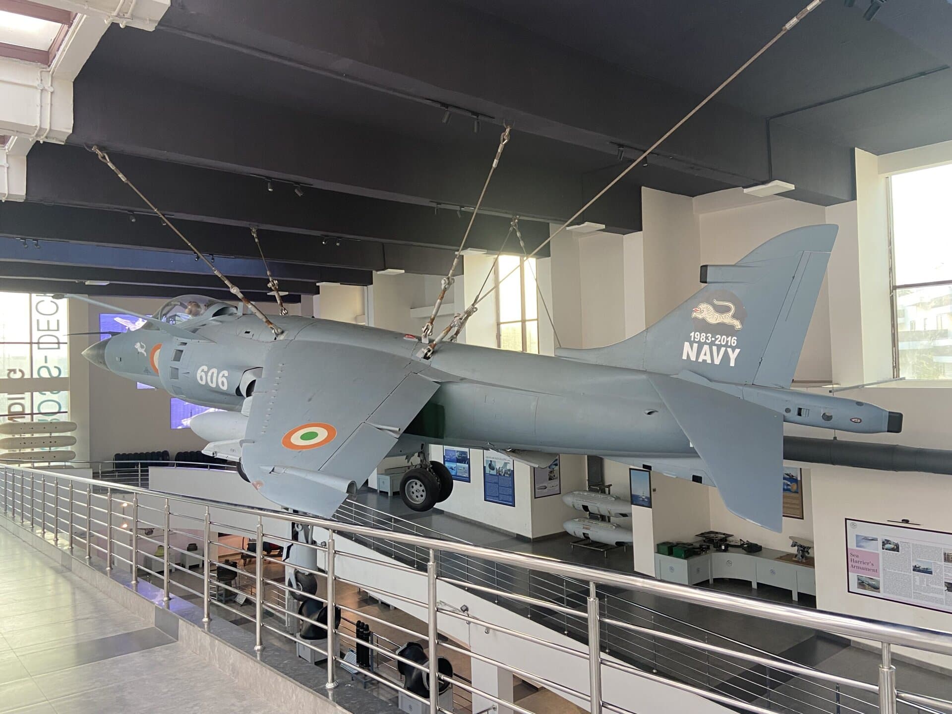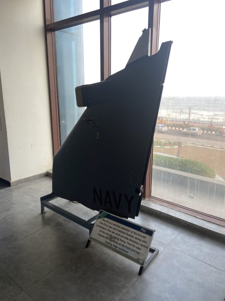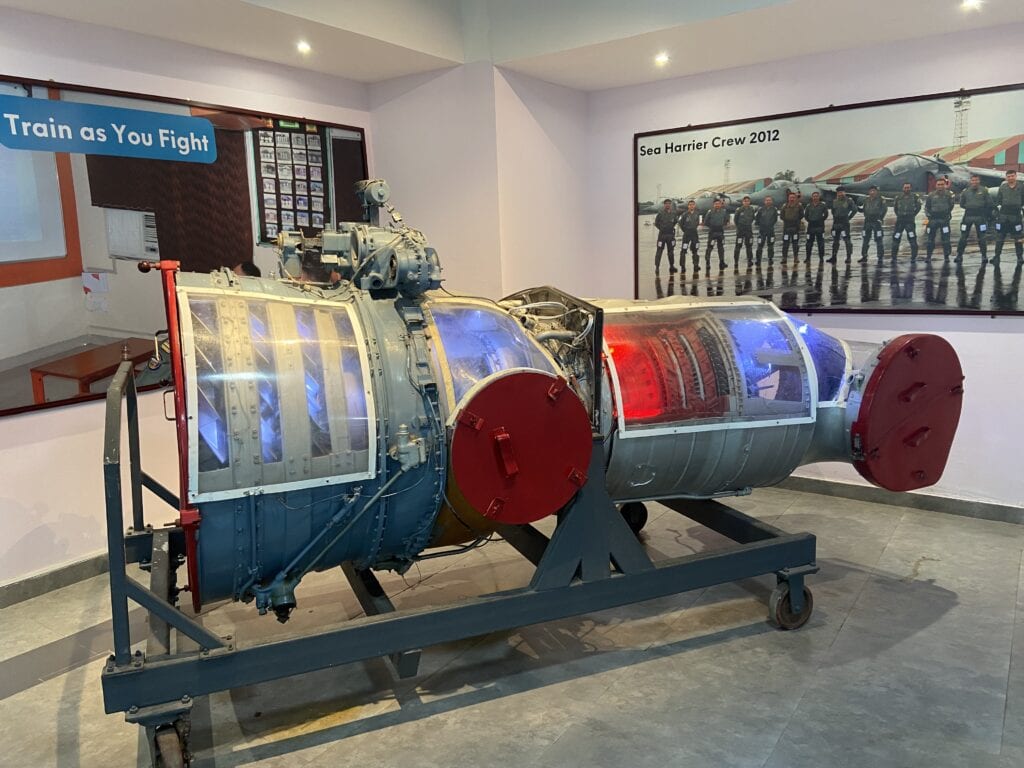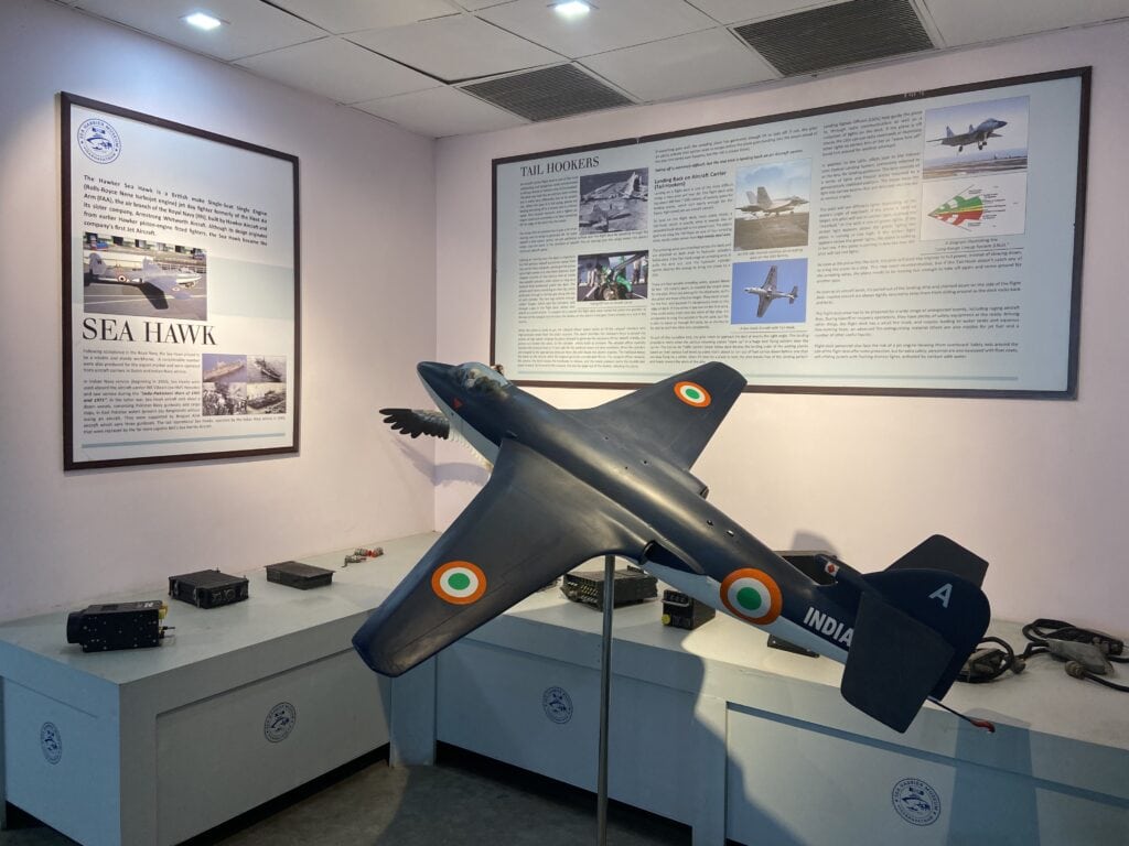 The Sea Harrier museum has a decommissioned Sea Harrier aircraft on display. The aircraft is hung from the ceiling. The museum showcases scale models of several aircraft used in the Indian Navy/Airforce, and all the components used in these fighter jets, like the engine, radars, missiles, pilot seat with ejection, etc. For Aircraft enthusiasts, this is a very interesting place to visit. At least half a day is required to thoroughly check out all the models. We had to rush through the museums because we had only a couple of hours.