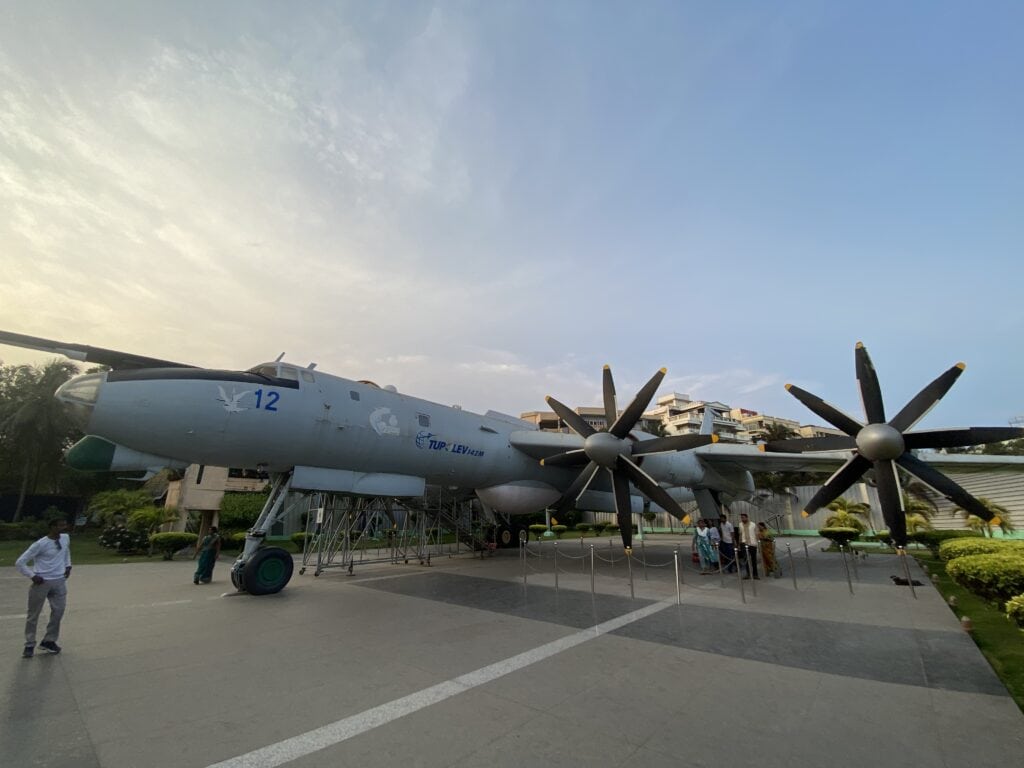 The next museum on RK Beach is the TU 142 Aircraft Museum. This museum features a decommissioned Tupolev Tu-142M aircraft, which served the Indian Navy for 29 years, accumulating over 30,000 hours of accident-free flying. After its retirement in 2017, the aircraft was preserved and transformed into a museum to showcase its legacy and educate visitors about naval aviation. Visitors can get into the aircraft and see various sections of it, like the cockpit, communications areas, places that store warheads, etc.