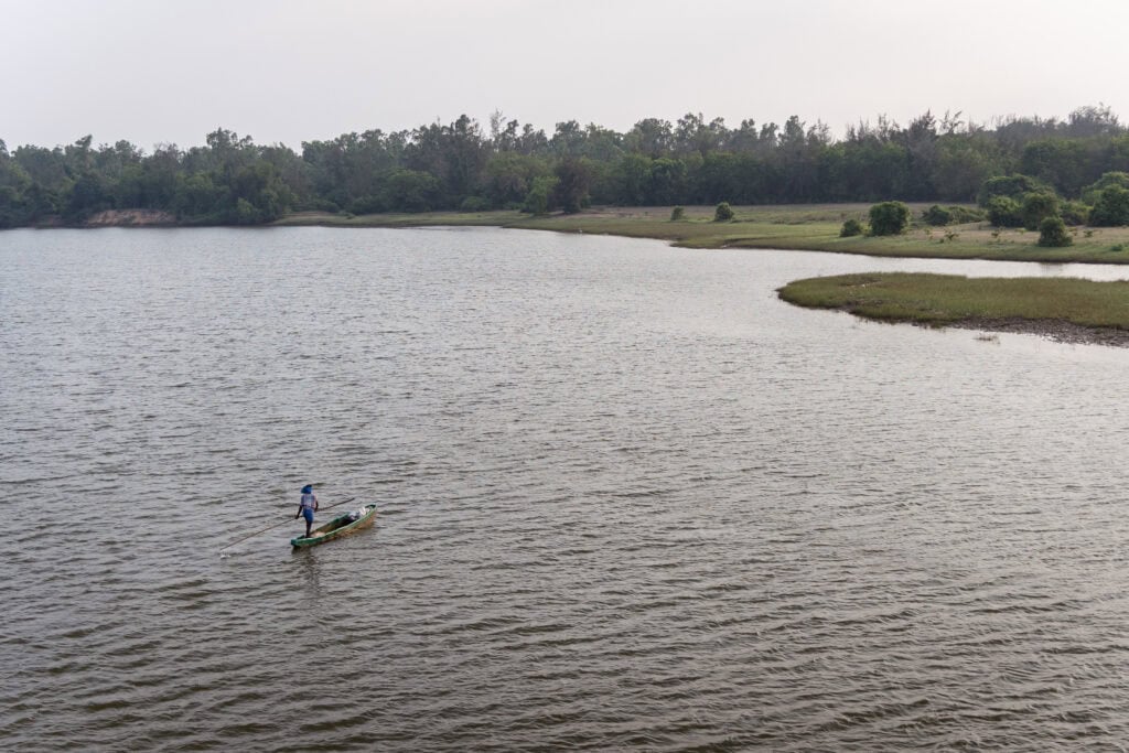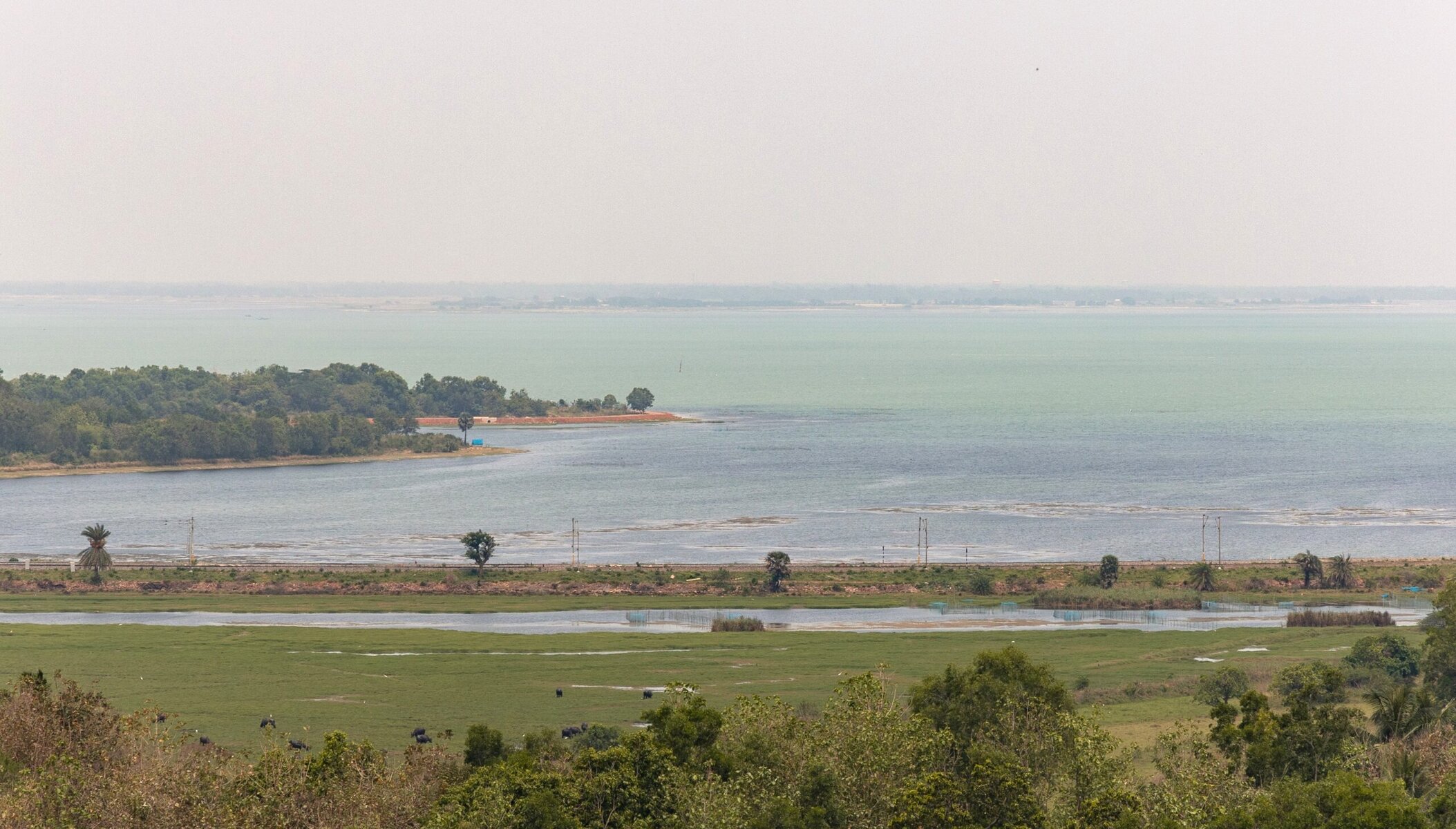 In the early afternoon, we came across a beautiful scenery of the Chilika lake as the road descended from a hill. The view of the lake and the sea with a subtle difference between the shades of water was mesmerising. We spent some time enjoying the scenery and clicking some pictures.