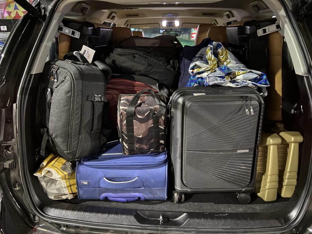 Before I go into the details of the road trip, let me write about the car that took us on this road trip. We made this trip with my Toyota Fortuner 4×4 AT. The car was simply awesome. Be it smooth six-lane highways, or broken roads, or flooded roads, whatever situation was thrown at it, the car took it without breaking a sweat.