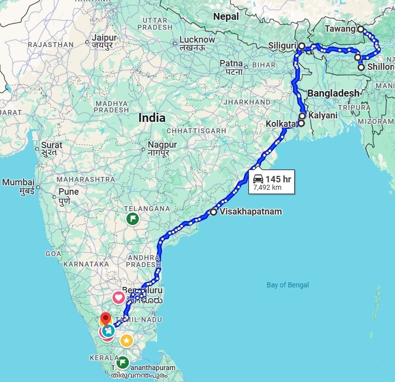 • In Part – 1, this article, I will cover the high level details of the drive, the drive from Coimbatore to Guwahati, and the places we visited in this first leg.