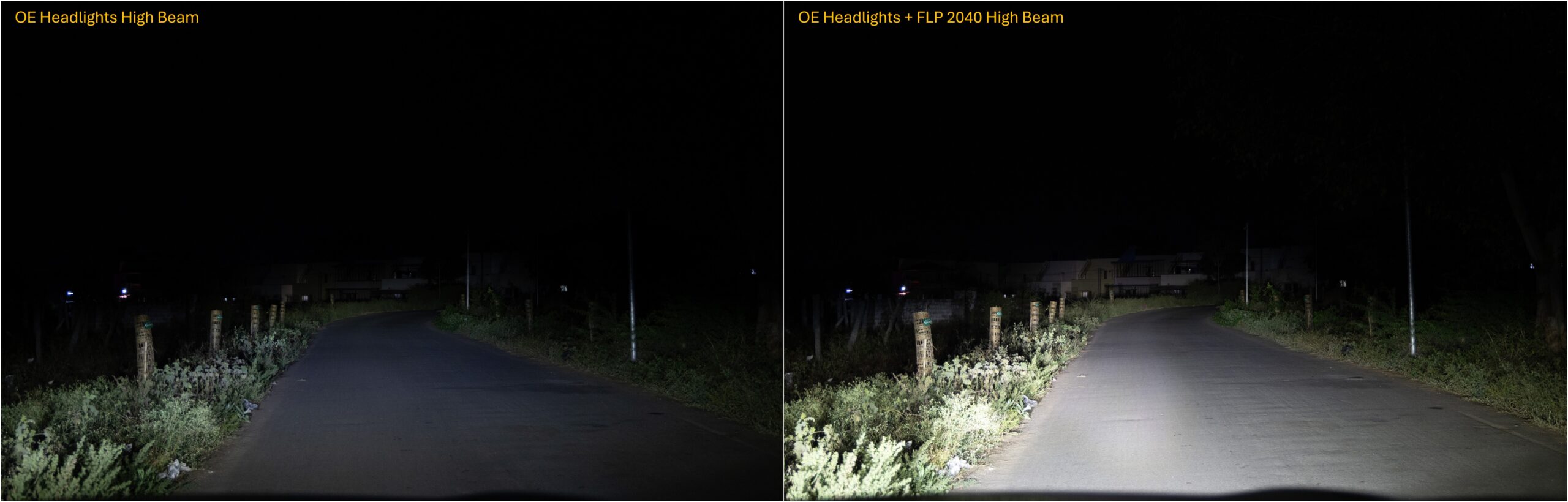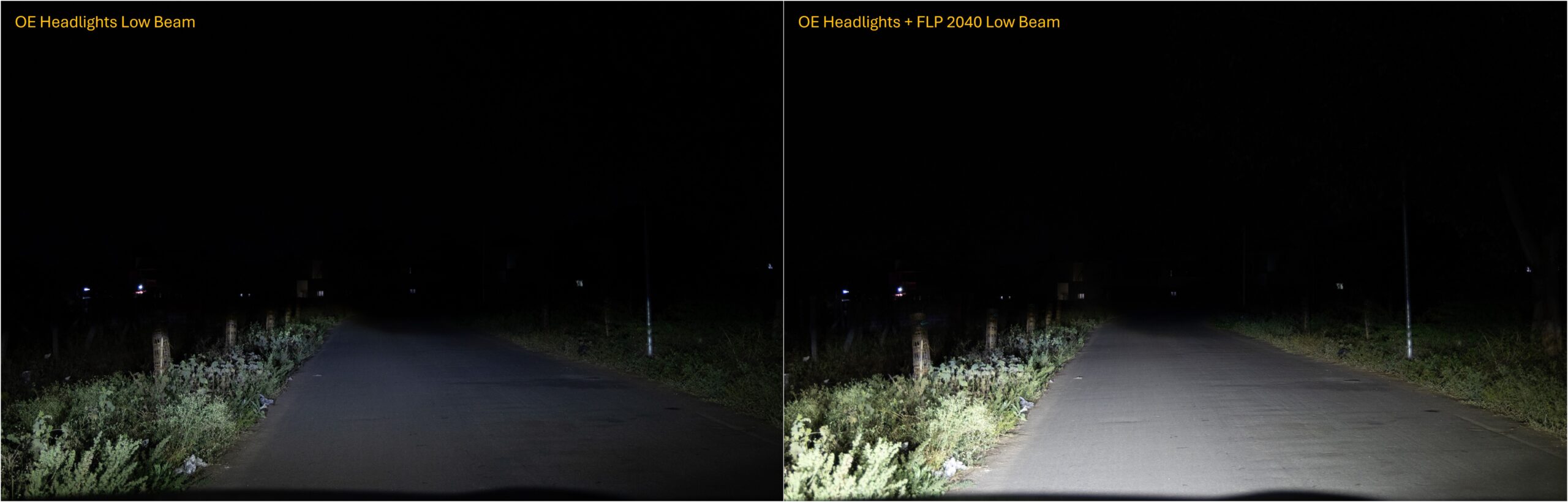 I made a short video to show the performance of the projectors. The first part is the comparison shot with a DSLR with manual exposure, so the difference is accurate. The second part is from my dashcam during the drive through village roads.