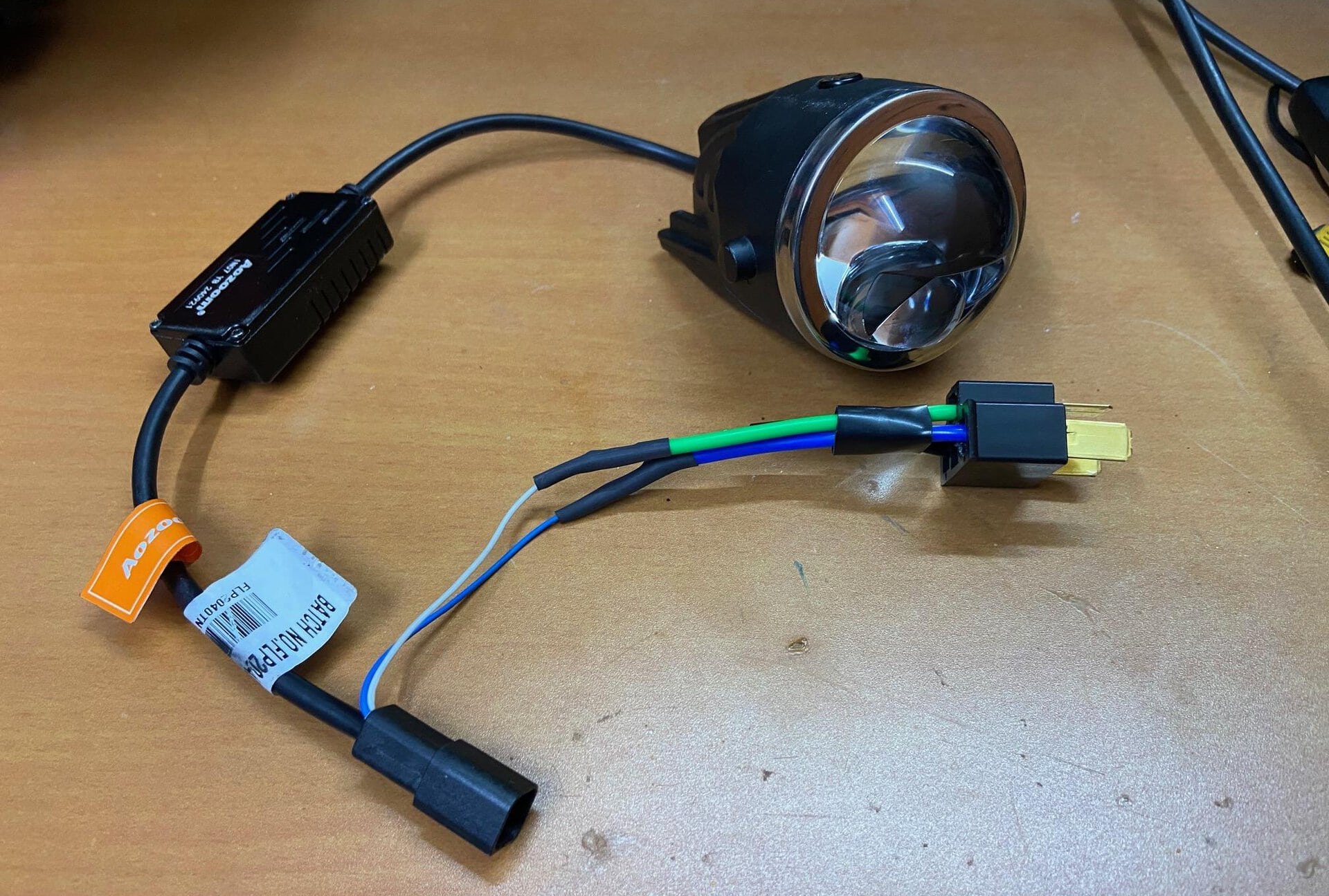1. The first was the connector in the projector was H11, whereas Toyota uses an L1B connector for their fog lamp. The installer did not have any intermediate wiring harness to convert from L1B to H11 and would splice the wires from the existing wiring harness.
